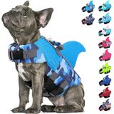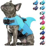 SUNFURA Dog Life Jacket Shark Life Vest for Dogs, Adjustable Swmming Vest with High Buoyancy, Safety Lifesaver with Rescue Handle for French Bulldog Small Medium Breeds, Blue XS
