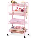 【Premium Quality】The mesh storage cart is made of high-grade metal material. Sturdy frame and rust-resistant process make it durable. Ergonomic handle and durable poles will not deform easily, smooth surface prevent scratching.