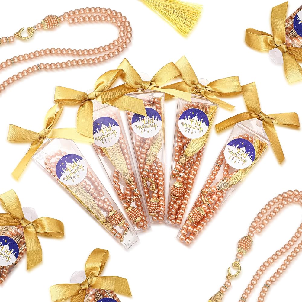 • Attention to Detail and Quality: each exquisite Muslim prayer beads gift boxes has been meticulously designed for quality and aesthetic appeal; Rosary beads are made from 99 champagne colored glass imitation pearls, providing a delicate and quality feel; The conical outer packaging features intricate sticker patterns and bow decorations, enhancing the attractiveness of each box