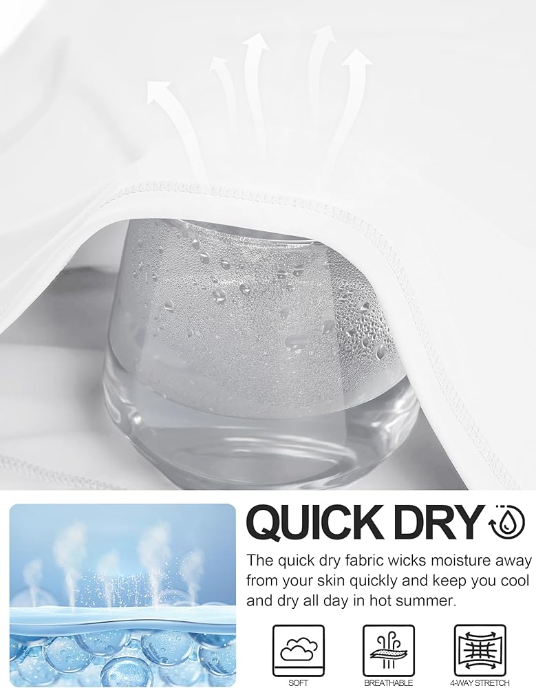 Quick-Dry Fabric:80% Nylon,20% Spandex. The quick dry fabric wicks moisture away from your skin quickly and keep you cool and dry all day in hot summer
