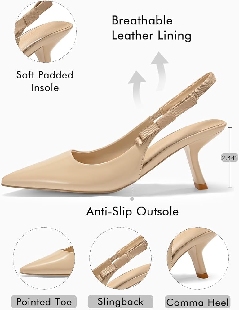 Comma Heel: With 2.44 inch (6.2cm) comma shaped kitten heel, the low heel pumps are simple and generous, makes the legs more slender
