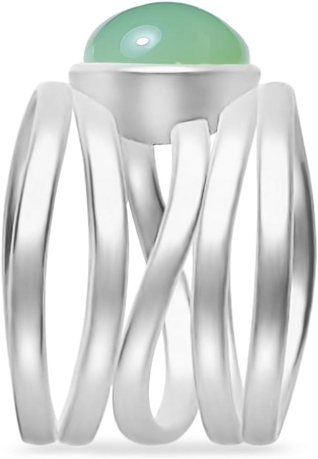 Oval Natural Green Dongling Jade Stone Ring,925 Sterling Silver Multi Lines Cross Knot Wide Band Ring,Full Finger Crystal Gemstone Chunky Thumb Band Ring for Women (A08_Dongling Jade, 7)