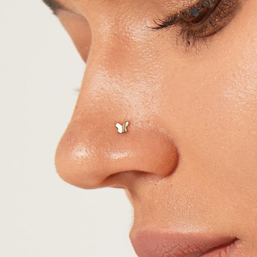 Styles: One 20 gauge nose stud only, different styles to choose from: butterfly, star, heart, pearl, ball, and flower. Each design is delicately crafted to add a unique touch to your look.