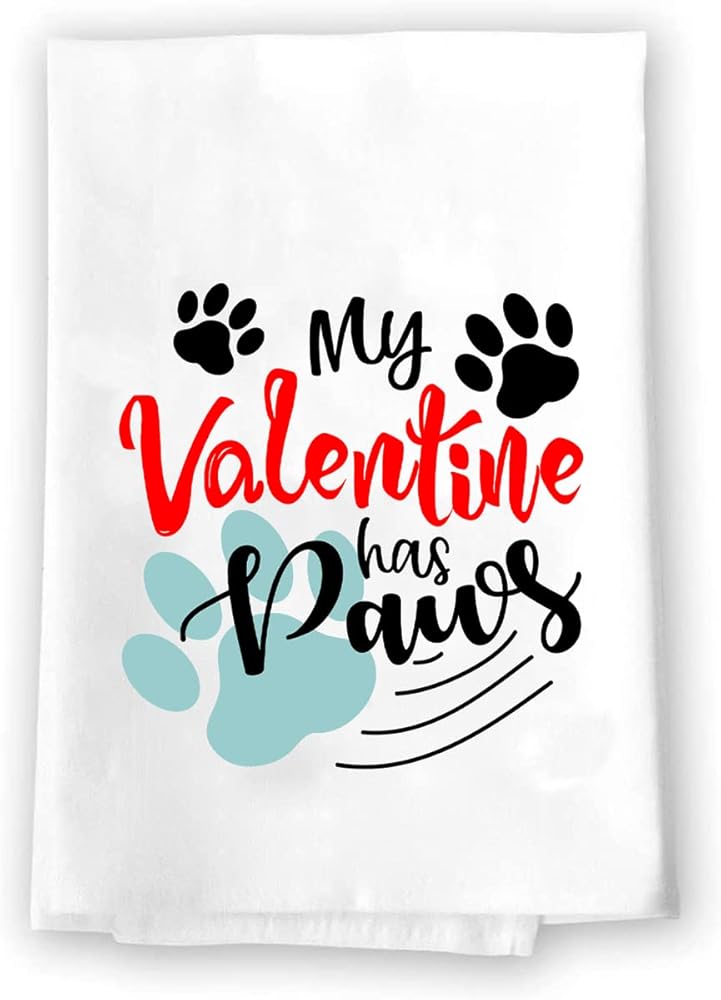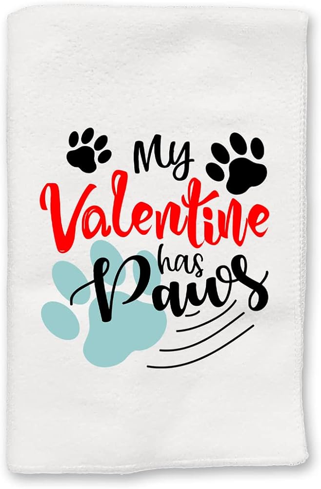 Decorative Kitchen and Bath Hand Towel | Valentines Day My Valentine Has Paws | Winter Valentine's Day Themed | White Towel Home Decor Bathe Tea Towels Decorations | House Warming Gift Present