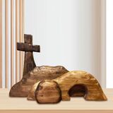 RUIQLXHANG The Empty Tomb Easter Scene and Cross Decoration, Wooden Jesus Tomb Tray Bundle Kit, Jesus Nativity Scene Christian Home Figurine Easter Decorations for Home, Tabletop, Office (A)