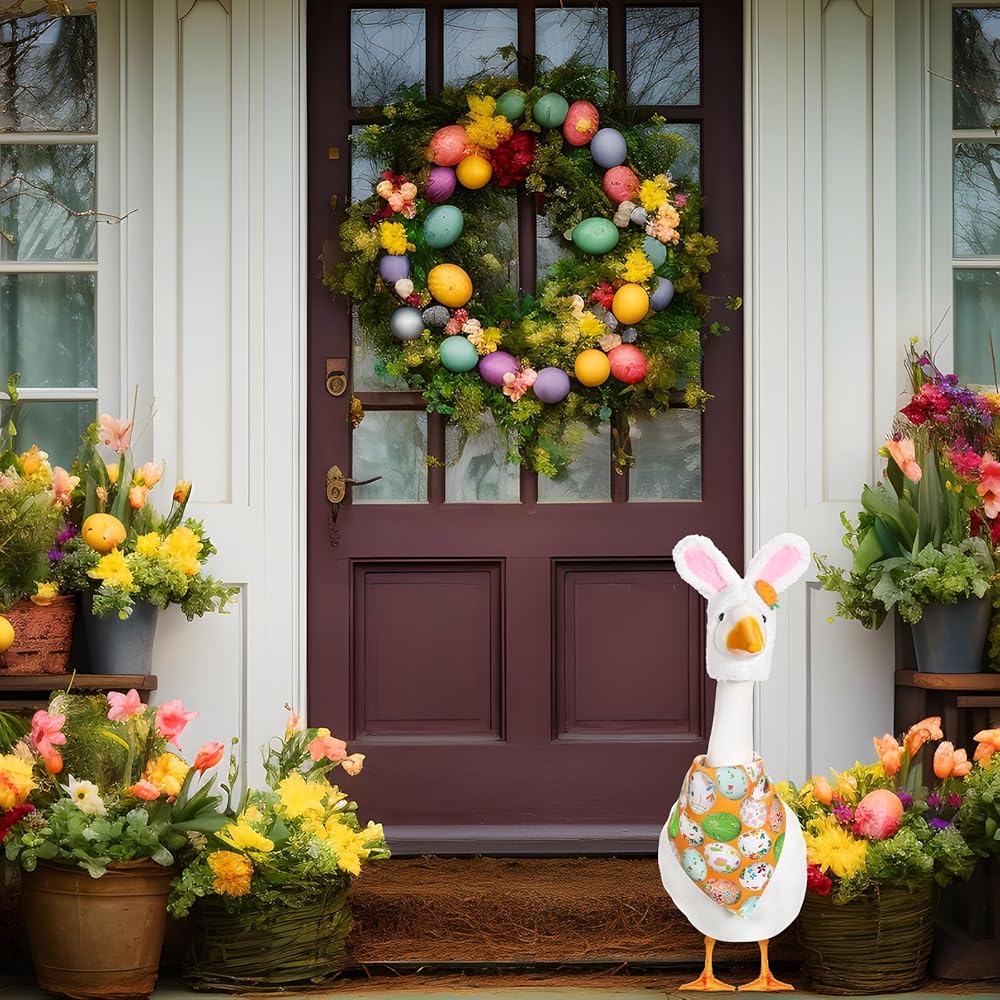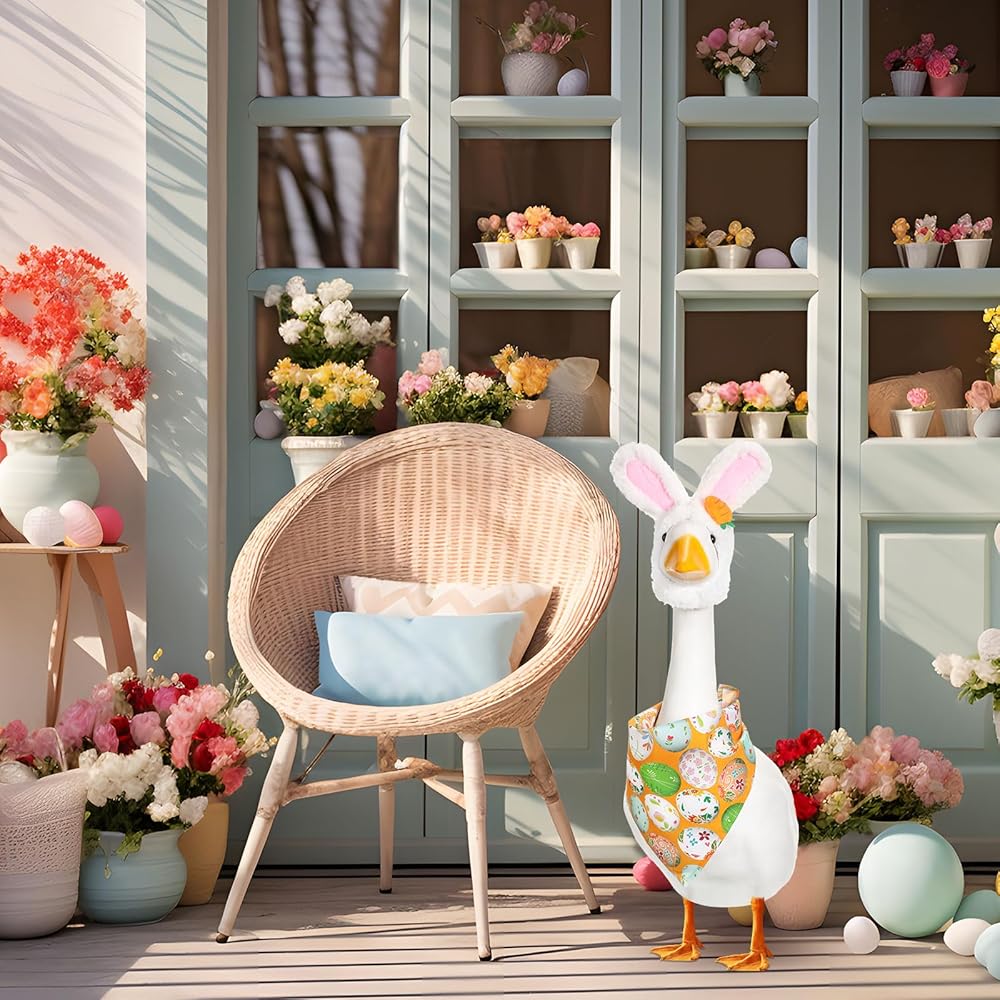 The spring easter goose costumes for plastic goose serve as a thoughtful gift for someone who love decorating their gardens. It's not just for lawn geese. It can also dress up real big geese, puppies, and even cats. It can be applied to dress up your pets carefully, making it a memorable present that stands out during the holiday season.