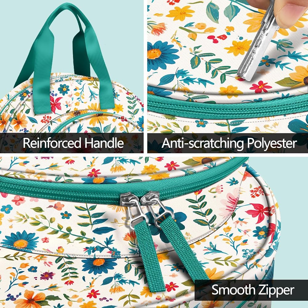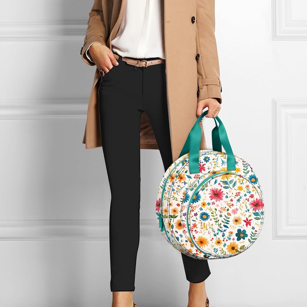 【Travel Embroidery Kit Bag】Overall dimension: 13'' x 5'' x 13''(L x D x H), the embroidery project bag is featured with a rounded shape for storing bamboo or plastic circle hoops and other embroidery cross stitch supplies kit.