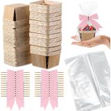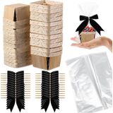Kigley 24 Set Wooden Gift Baskets Empty Small Gift Basket with Cellophane Bags Bows Basket Kit for Easter Spring DIY Picking Fruit Birthday Baby Shower Wedding Bow Party(4 Inch,Black)