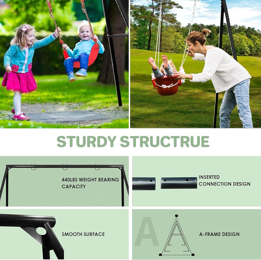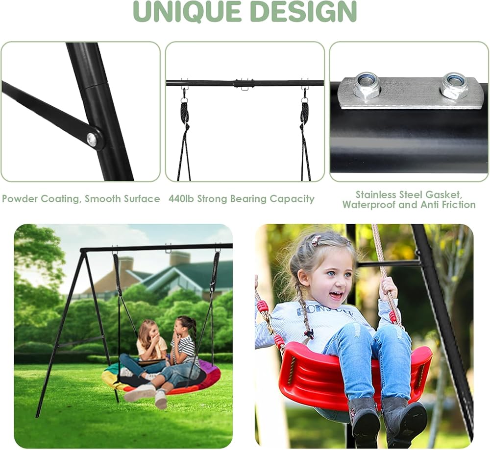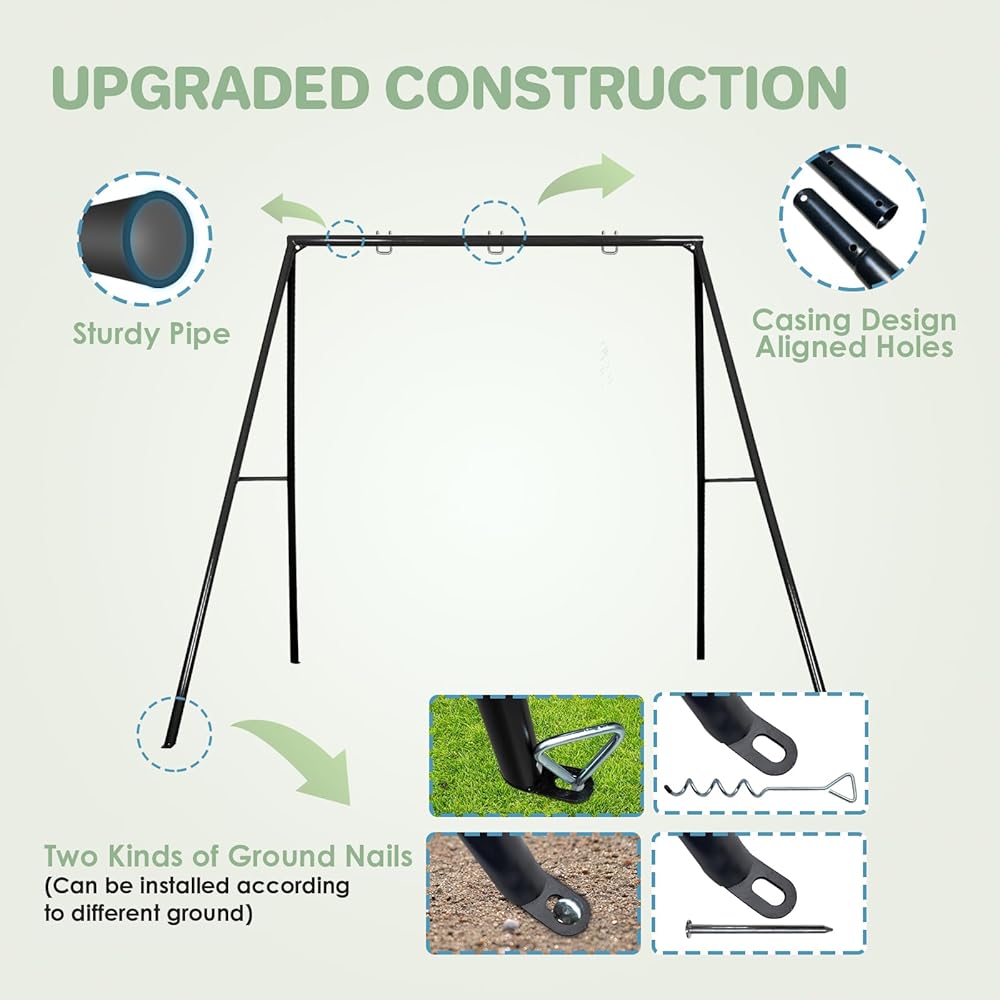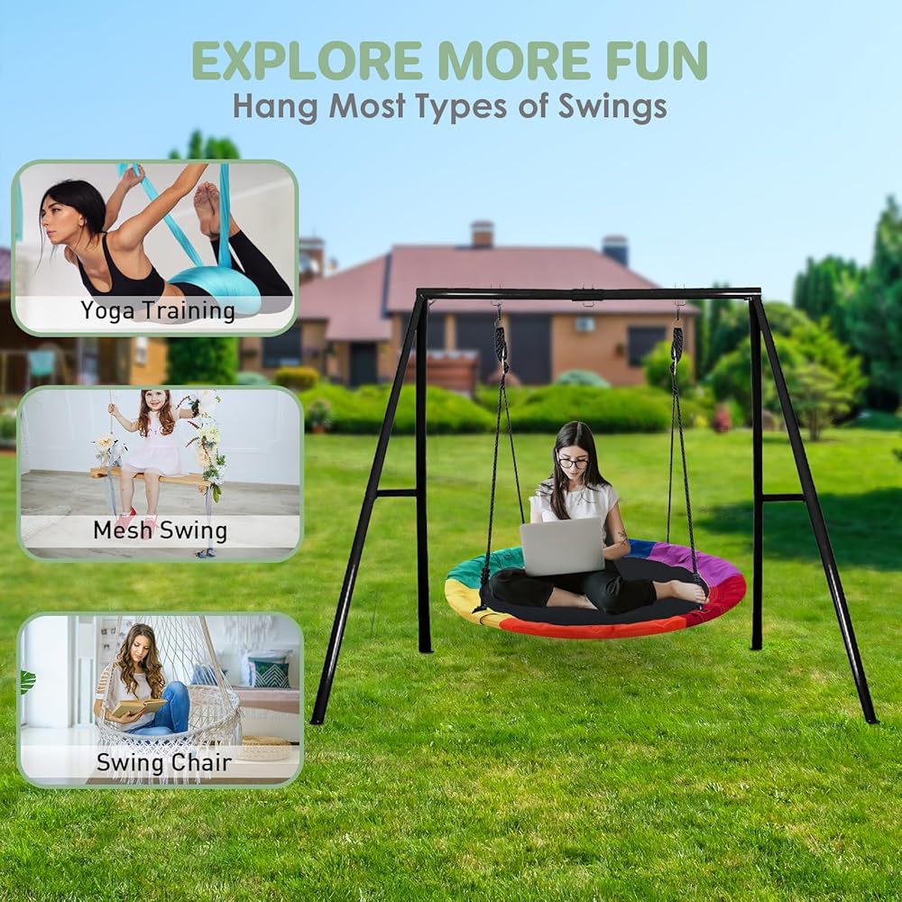 【Hang Most Types of Swings】: The swing frame matches different swings that will work great, like porch swings, net swings, web swings, saucer swings, hanging chairs, baby carrier swings, yoga swings and more.