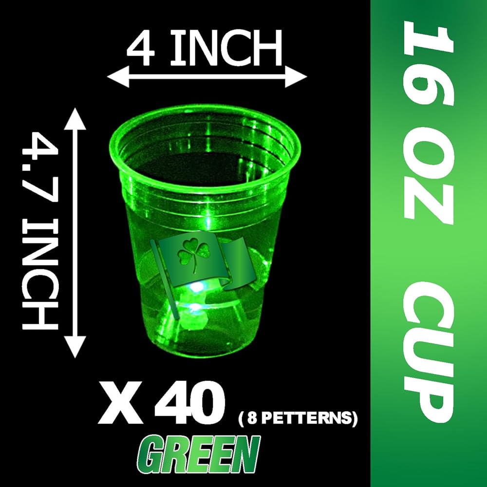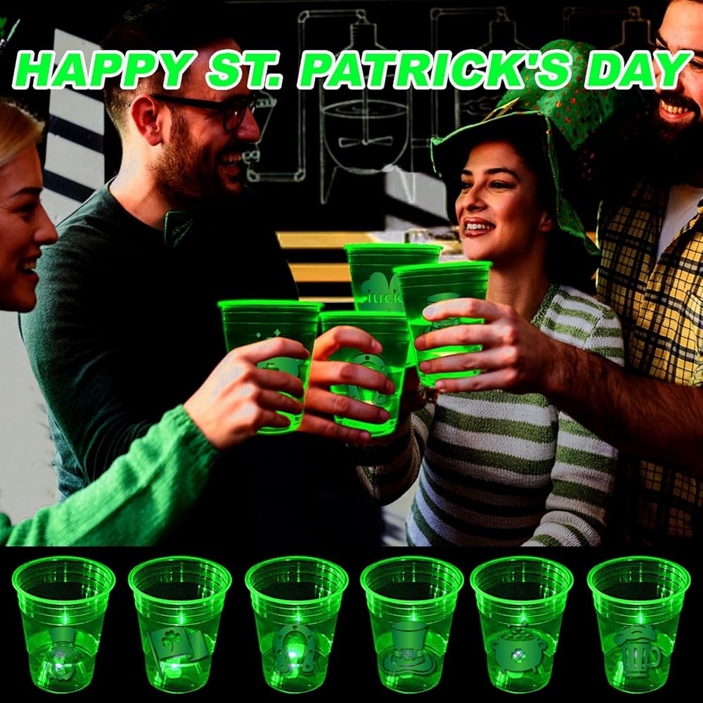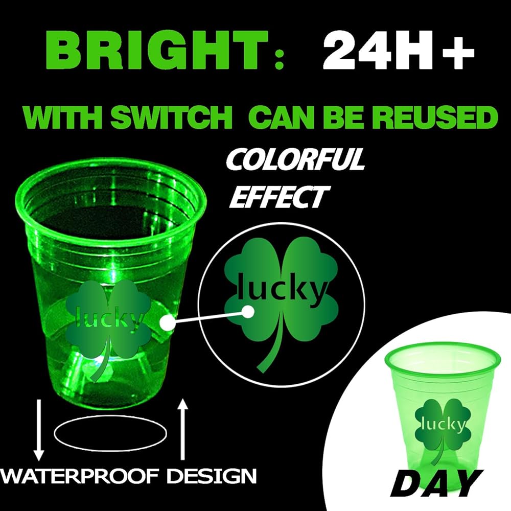 High-quality Material: Glow St Patrick's Day party cups are made of premium, clear, sturdy and durable food safety. Safe for cold drinks and food. It is crack resistant and will not break in guest hands.