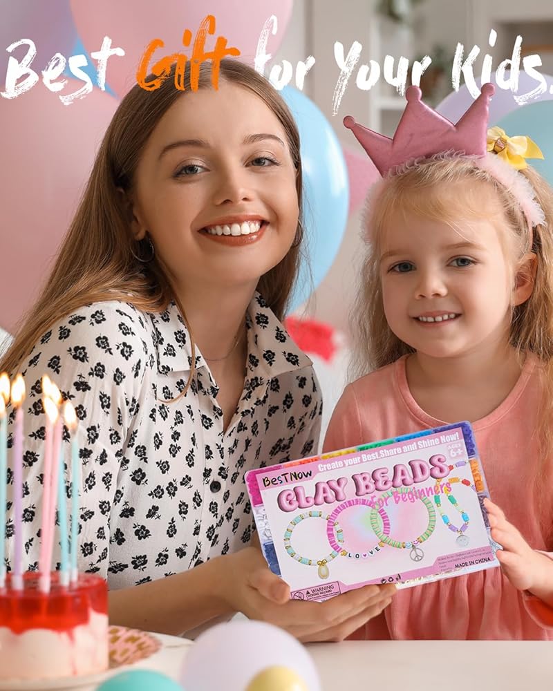 Discover endless creativity with BestNow's jewelry kit—featuring 4500 polymer clay beads and 500+ accents like letters and golden starfishes. Perfect for beginners, it includes step-by-step guidance to make bracelets, earrings, or necklaces, while durable materials ensure everyday wear. Gift-worthy and fun! AGES 6+