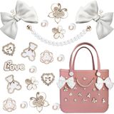 【Set of 20】Butterfly, flower, pearl and Chain charm set, perfect for decorating your beach bag and similar bags, give your handbag a unique style and enrich your beach bag, and the set combination is more suitable for sharing the fun with friends.