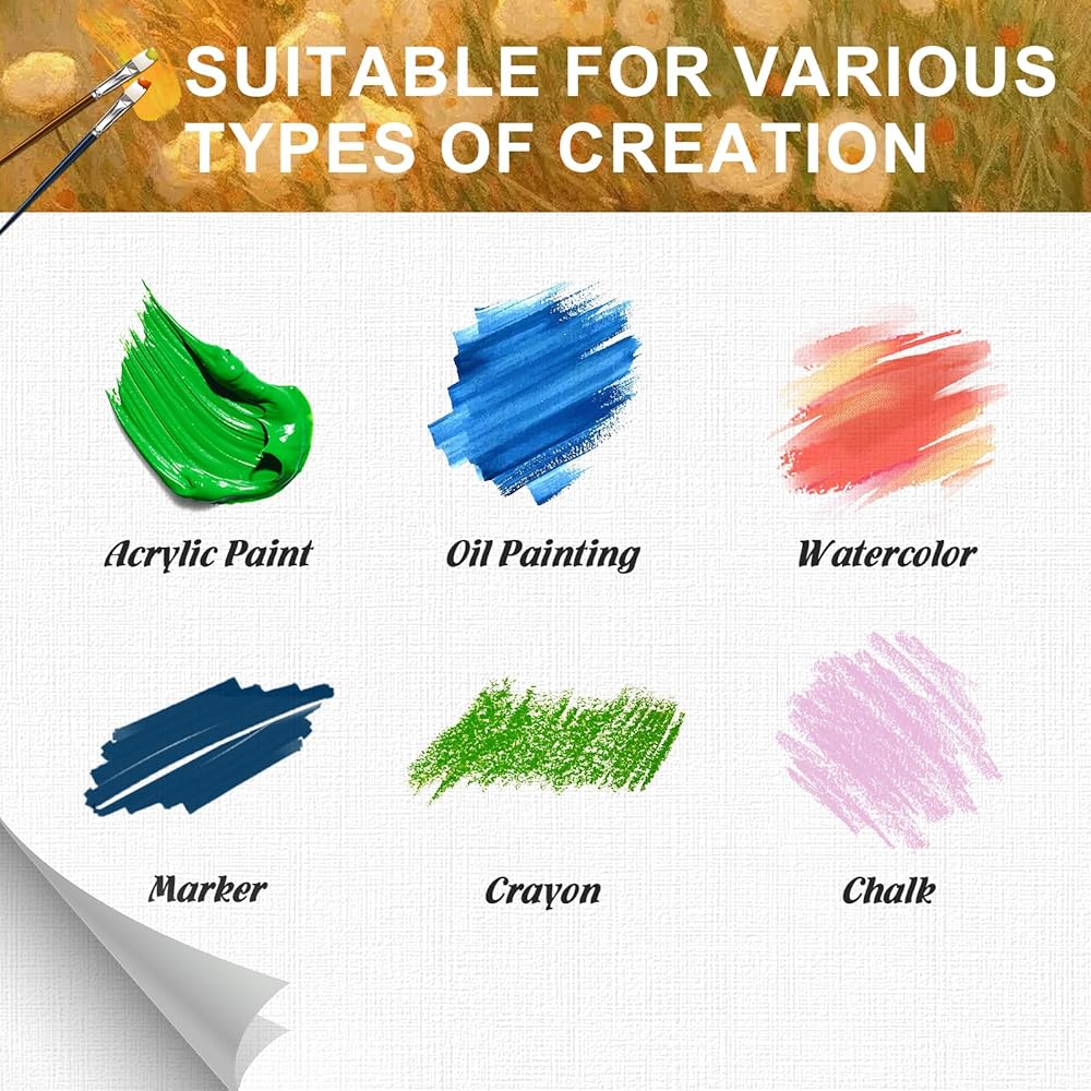 【Widely Used】Watercolor 4x4 canvases for painting suitable for oil painting,watercolors,acrylic paintings,tempera paintings,pouring,Gouache and Tempera,etc.. Canvas bulk are also suitable for various occasions such as teaching, gatherings, home decorations, birthday decorations, etc.