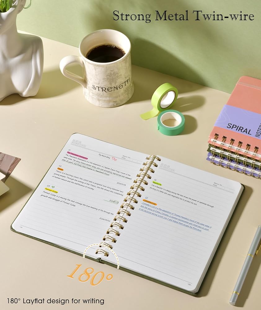 【Metal Twin-wire Construction】Our wire-bound spiral journal notebook has a sturdy gold-color double wire spiral with easy-to-turn pages and keeps pages attached reliably. Metal wire ring makes it easy to tear out pages without disturbing the rest of the pretty notebook. The 180°flat binding makes it easy to take notes with either hand, making it easier to read and more efficient to keep track of things.