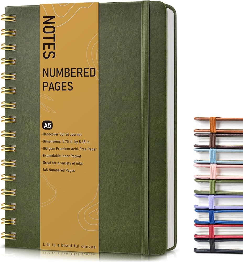 【Journal Notebook with 150 Numbered Pages】 The lined spiral journal notebook features water-resistant vegan leather cover touched comfortably, which will help to protect the pages inside and provide a comfortable writing surface. With 150 numbered pages and a 2-page content pages for keeping track of anniversaries, special events, important details, making it easier to review your notes later. Inspirational quotes on the info page to motivate moving forward.