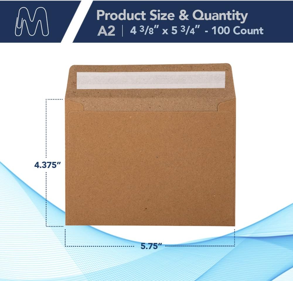 MOS A2 Kraft Envelopes 4.4 x 5.75 Inch 100 Pack — Brown Self-Seal Heavyweight Invitation Envelopes for Greeting Cards, RSVP, Card Making, Wedding Invitations, Business Mailings