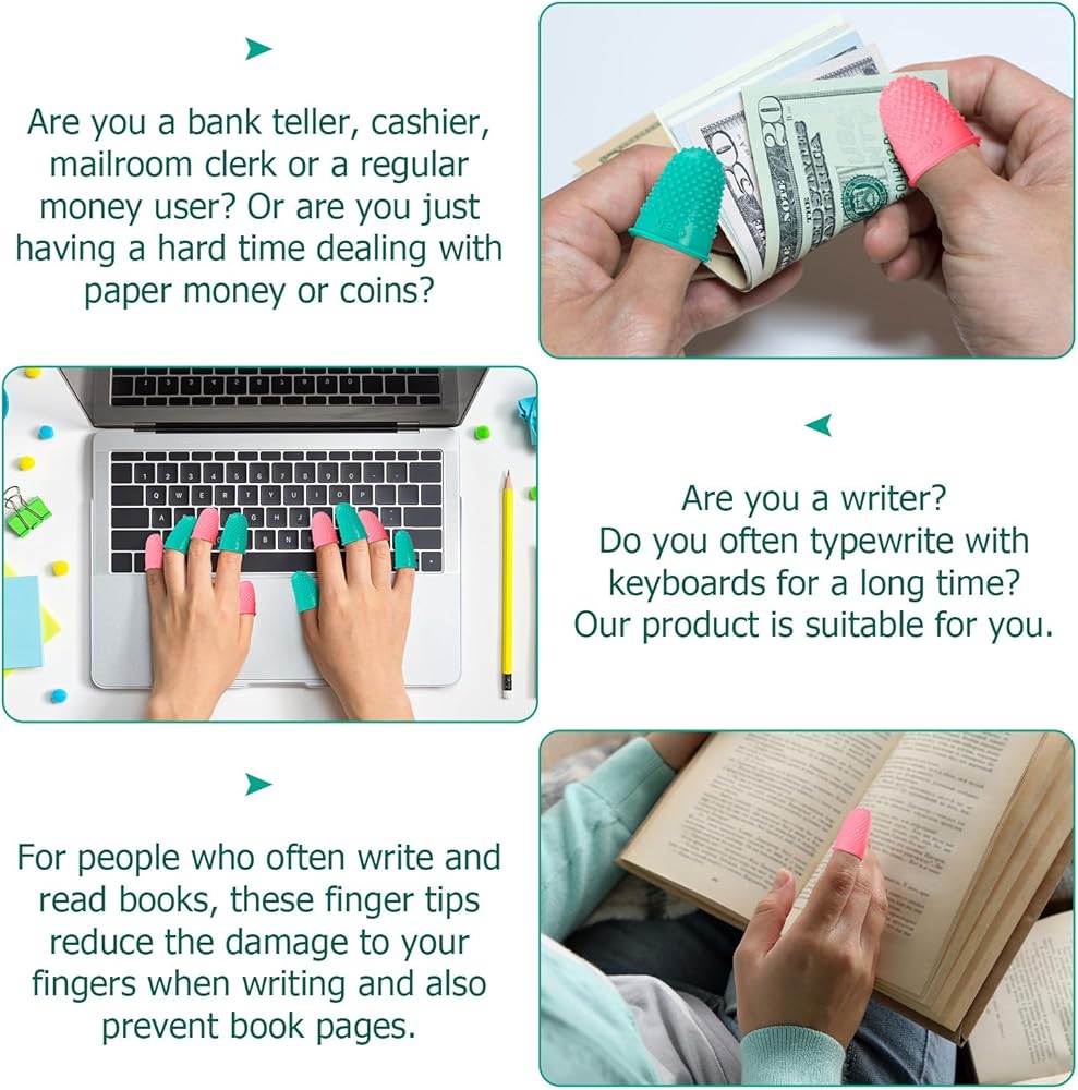 - Protects fingers and improves grip when counting money, typing, writing, sorting papers, doing crafts