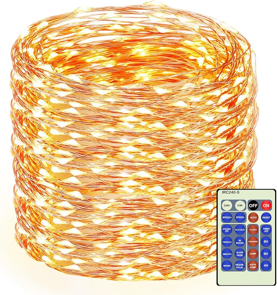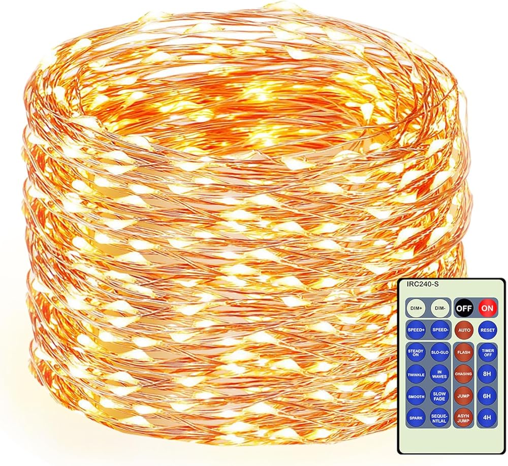 Dimmable 164 Feet Fairy Lights - With a 24 key remote control in hand, so easy to TURN ON/OFF; ADJUST BRIGHTNESS; SWITCH MODES from flash to smooth to steady on. DIY the best mode for your own decoration.
