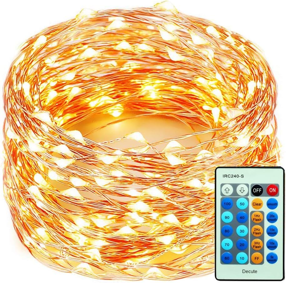 Decute 300Led 99FT Copper Wire Christmas Fairy String Lights Dimmable with Remote Control Starry Lights with UL Cerficated Decorative for Party Wedding Bedroom Yard Christmas Tree Warm White