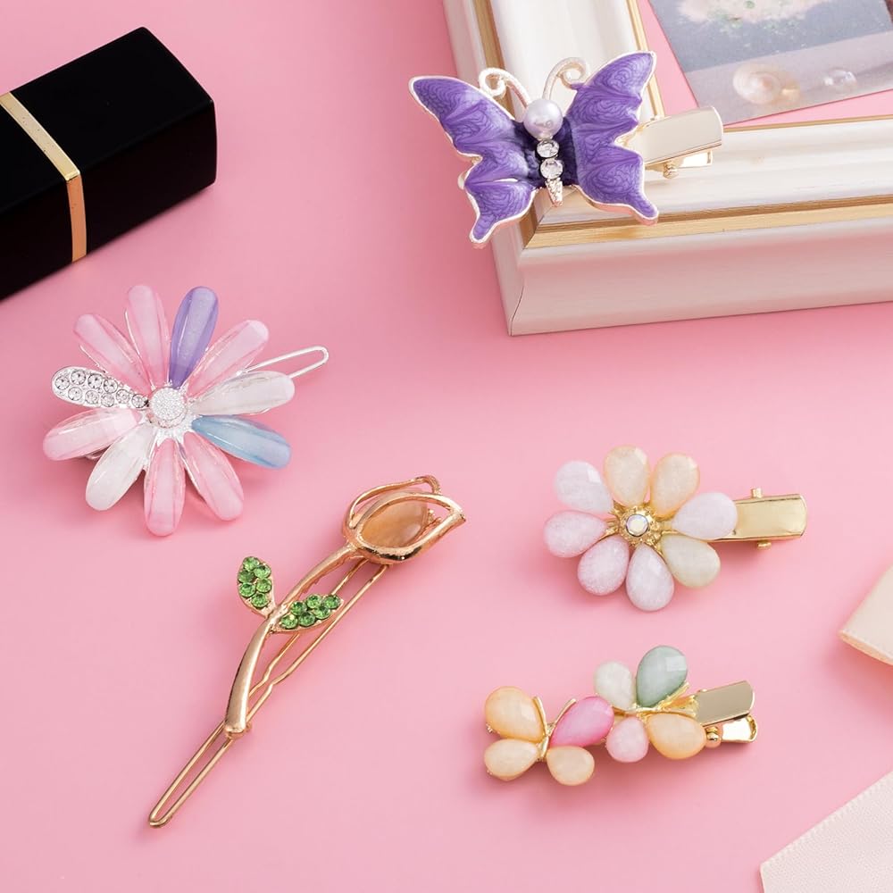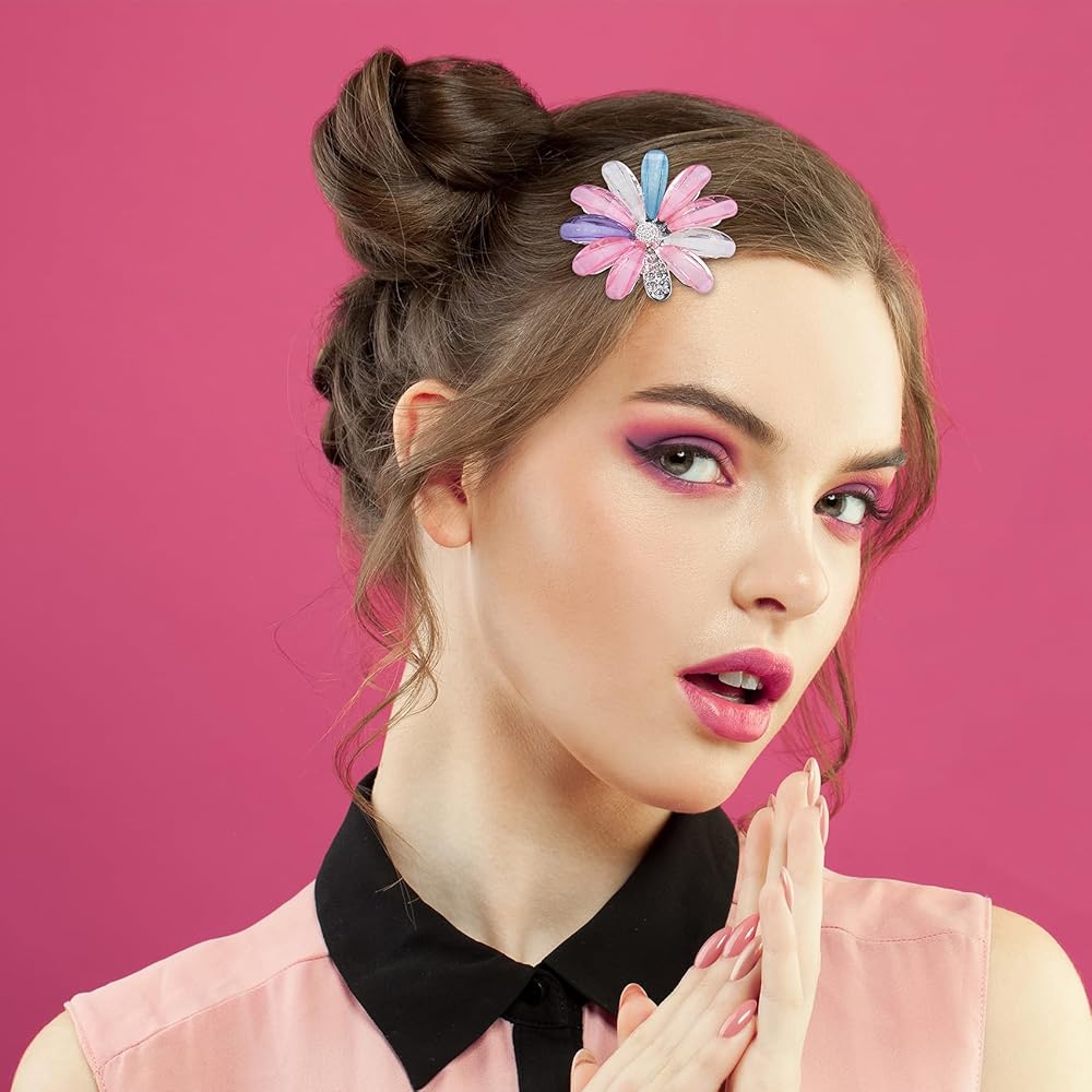 PAGOW 4 Pcs Cute Hair Clips Daisy Butterfly Flower Bobby Hairpins Glitter Crystal Rhinestone Barrettes Handmade Metal Jewelry Wedding Prom Valentines Birthday Accessories