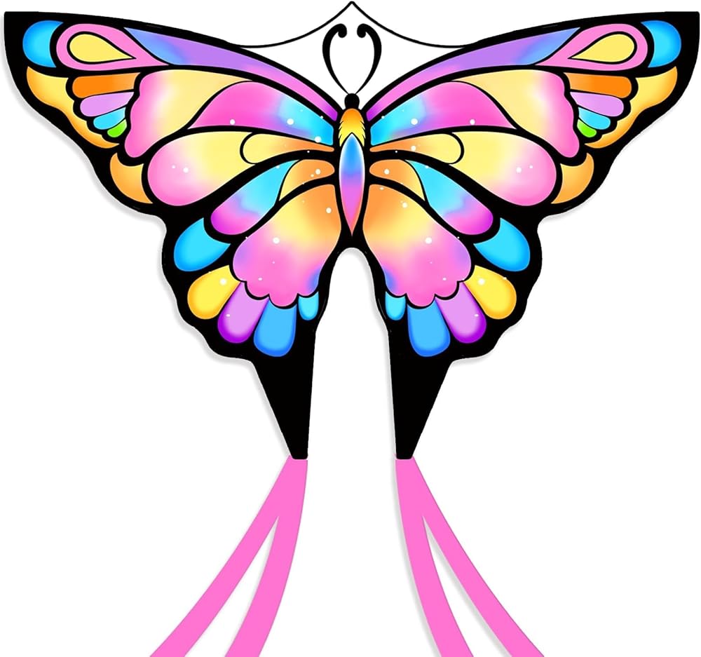 Special Kite for Kids & Adults: The colorful butterfly kite is designed with large size: 55in*27.5in, which is suitable for kids, teens as well as adults. It's designed with real butterfly in mind, which looks attractive and vivid in flight, definitely the eye-catching spot in the sky.