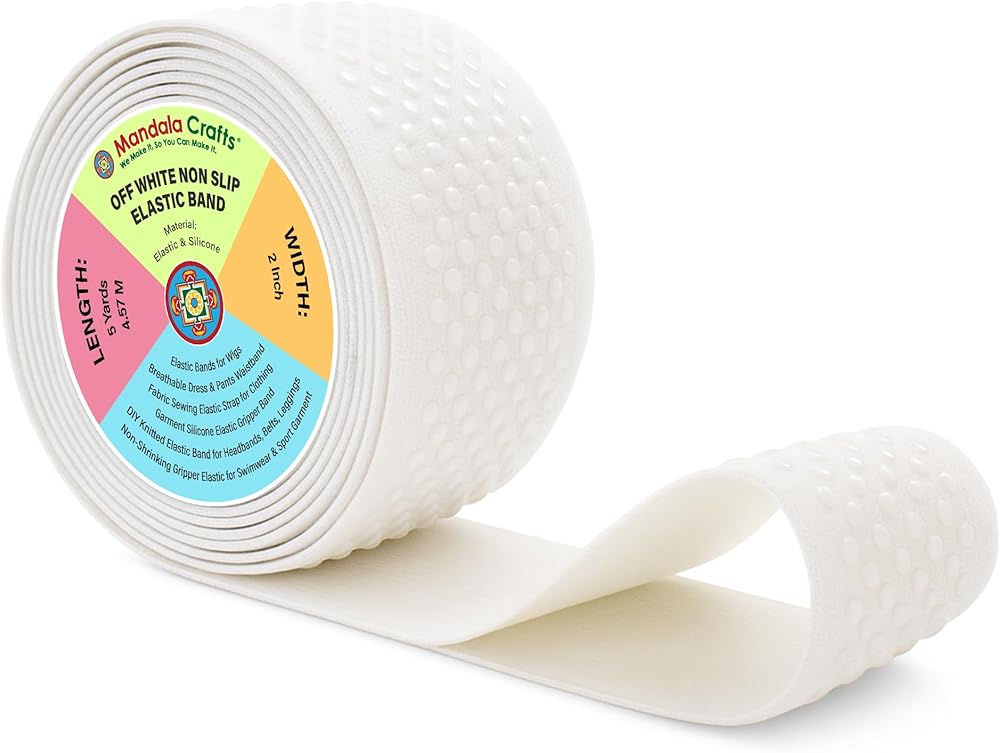 Easy to Sew & Glue Silicone Gripper Elastic Ribbon: The non irritating 2 inch wide, 5 yards long, and 2mm thick elastic band does not deform, slip, or roll when stretched, allows needle stitch through easily, and can stretch about 90% of the original length.