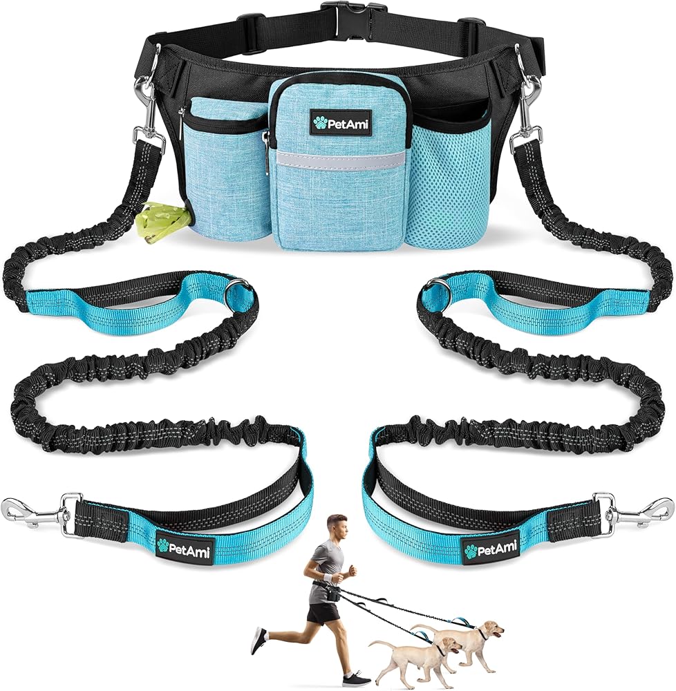 Each dog leash stretches up to 60 to 70 inches and is suitable for pets below 75lbs. This handsfree waist bag is constructed with durability and toughness in mind while loaded with safety features like reflective trims and designed for convenience with multiple pockets to hold any dog supplies and essentials.