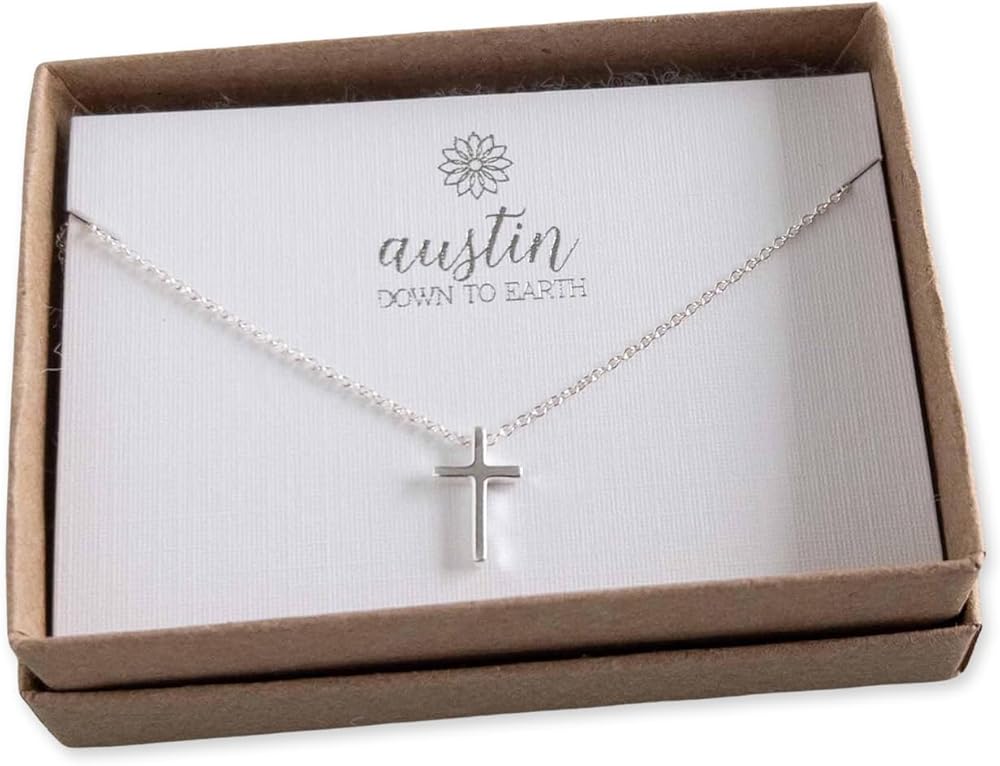 Sterling Silver Dainty Cross Necklace for Women - Tiny Cross Pendant - Small Cross for Girls Baptism, Confirmation, Graduation Gift - Austin Down to Earth