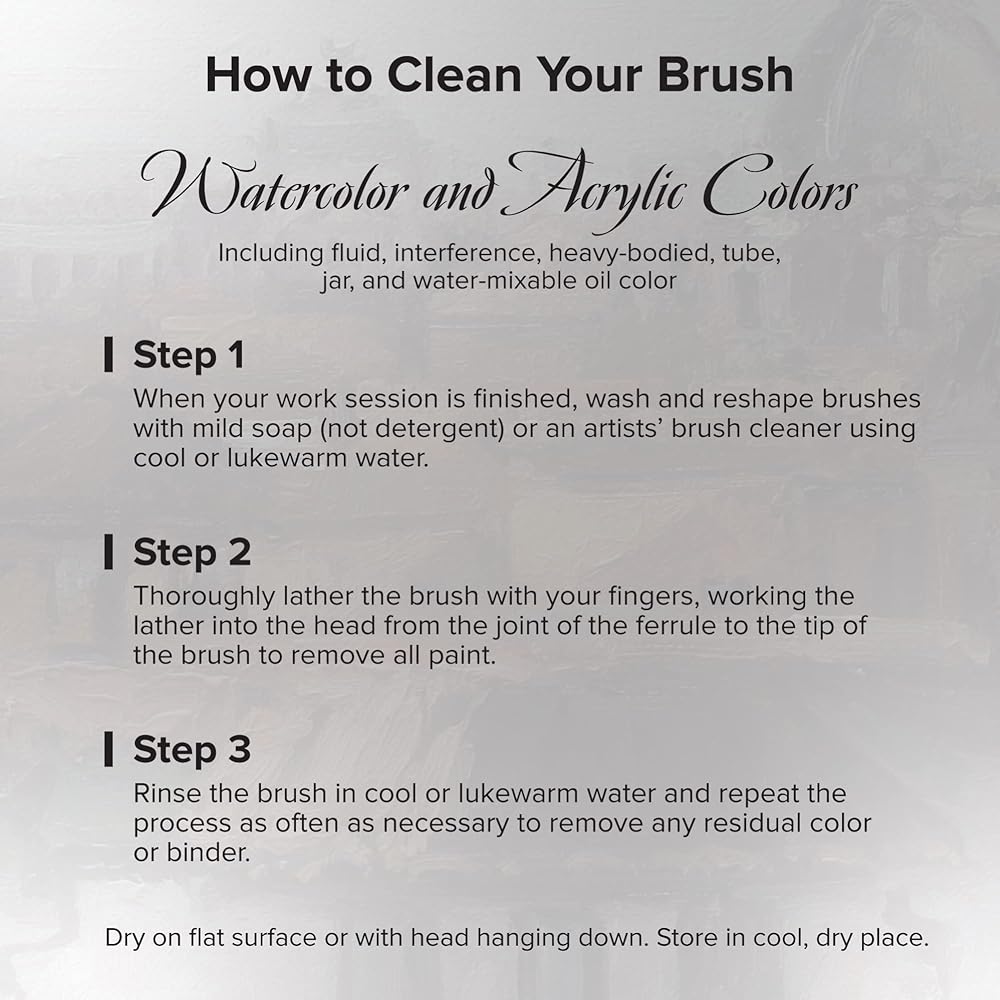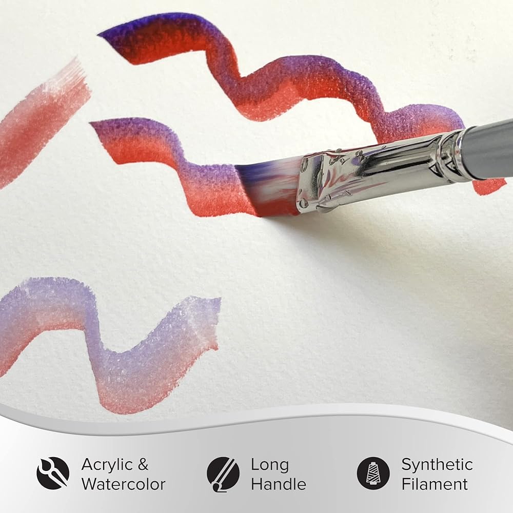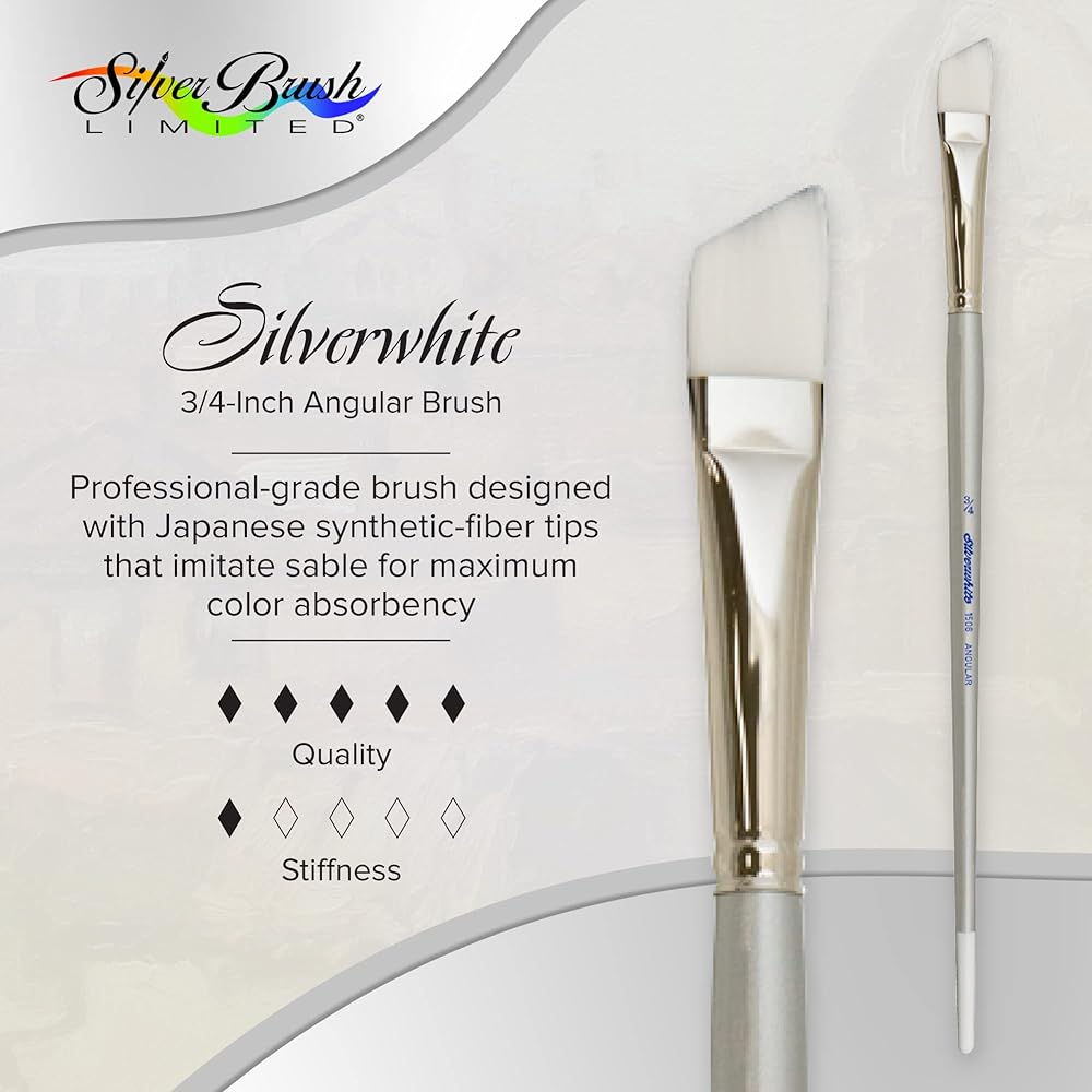 MATERIALS: Our Silverwhite faux-sable art brushes are expertly crafted with a luxurious blend of multi-diameter Japanese synthetic filament that carry paints effortlessly across your painting surface. This series is soft, durable and snappy with fine points and chiseled edges for crisp, clean strokes. Each brush has a wooden handle that is finished with a sophisticated nickel-plated brass ferrule that will not rust.
