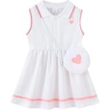 Package:2 piece outfits include 1 pieces Girls Sleeveless Dress, 1 pieces heart print bag