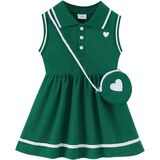 Unique Design:Ruffle polo sleeveless heart dress with heart print shoulder bag printing,stylish comfortable and sport, top choice for little toddler girl sunmmer dress.
