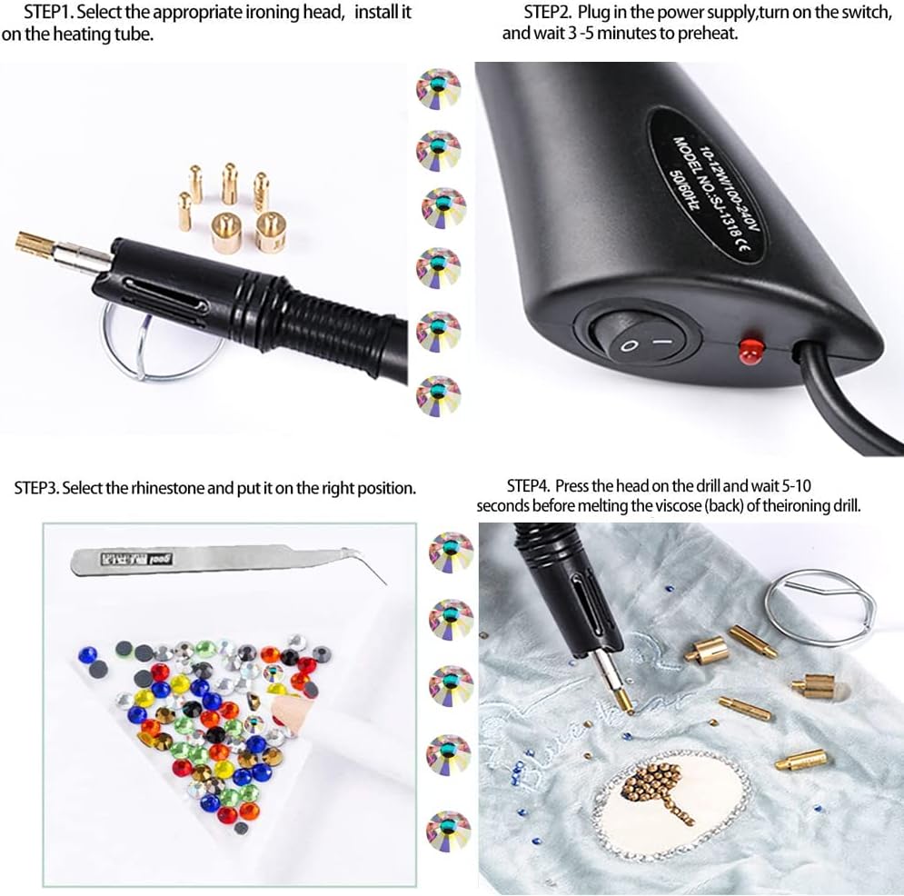 4.The applictor cannot pick up any stones before heats up. So MAKE SURE to preheat the applicator wand (takes about 2 minutes to heat up) before trying to pick up or apply any hotfix rhinestones.