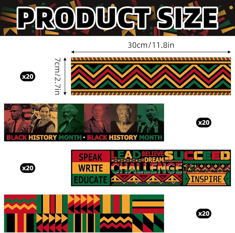 80Pcs Black History Month Bulletin Board Borders, Black History Month Bulletin Board Decorations African American Bulletin Board Borders Decor for Office Classroom School Kwanzaa