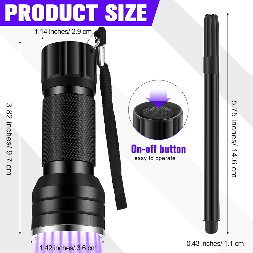 Multipurpose Use: this blacklight pen can be applied to draw on a variety of surfaces such as clothing, paper, walls, skin, etc. It can also be applied as a gift bag filler and classroom reward; The uv flashlights can detect animal urine, pet stains and food stains, and can also be applied to verify the authenticity of currency