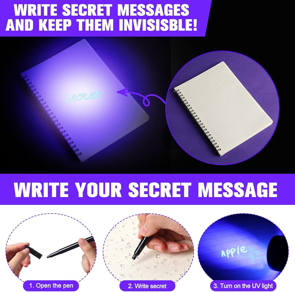 Package Contains: you will receive 2 UV flashlight(batteries not included) and 2 invisible ink markers; Kids can write their secret messages on paper that will only be revealed under UV light; Whether it's for spy games, family gatherings, back to school activities or kids' parties, these mysterious tools will inspire their imaginations
