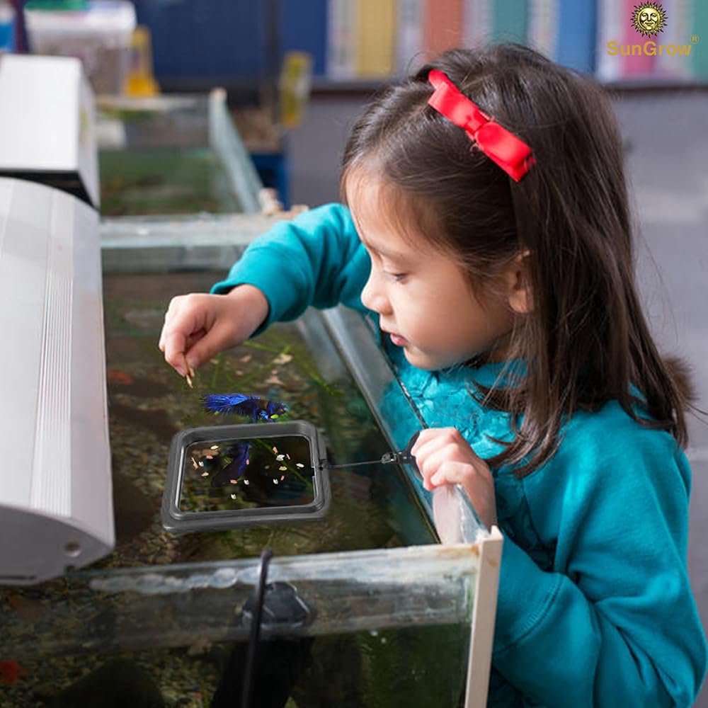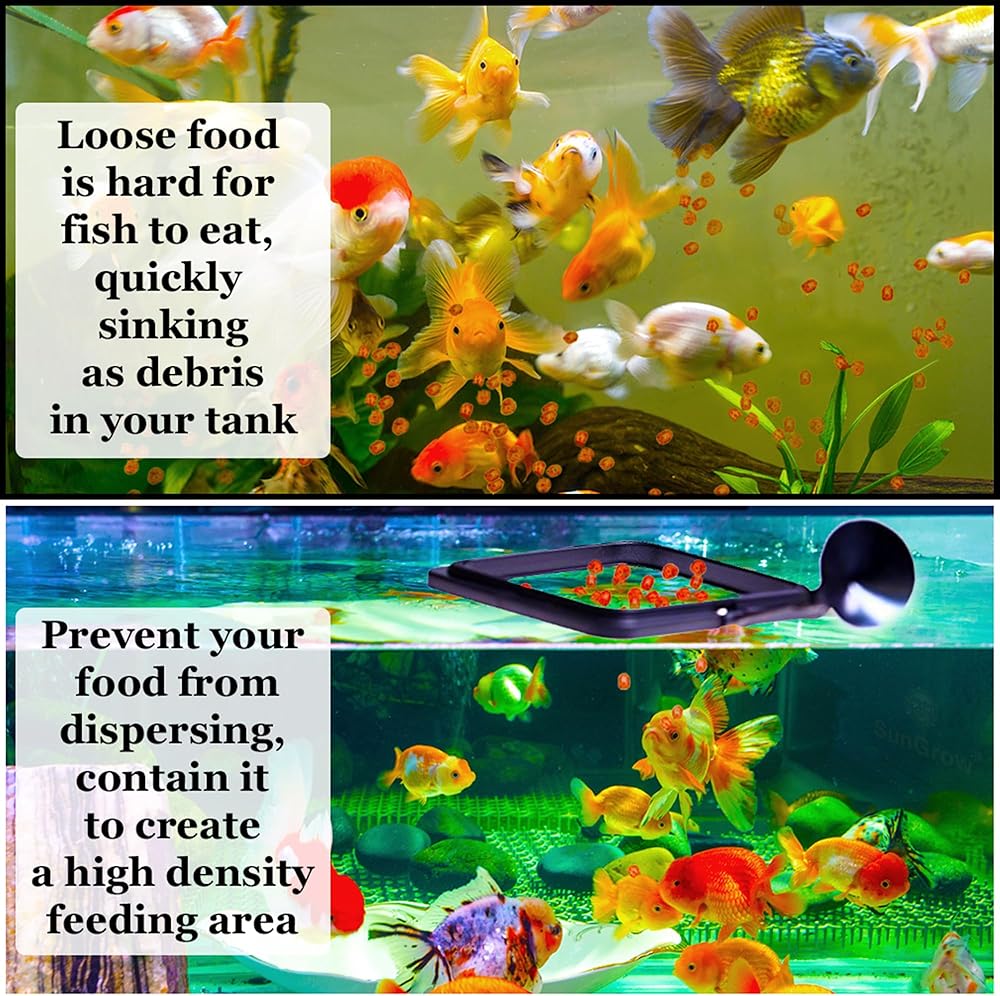 Encourages picky eaters to eat more --- Some fish are more finicky than others or maybe a bit shier and do not want to eat with the other fish. The SunGrow Floating Fish Feeding Ring allows you to feed specialty foods to the pickier fish while sprinkling standard floating fish food to the general population of fish. It won't take long for your finicky fish to quickly learn that the square fish feeder is where to find their supper.