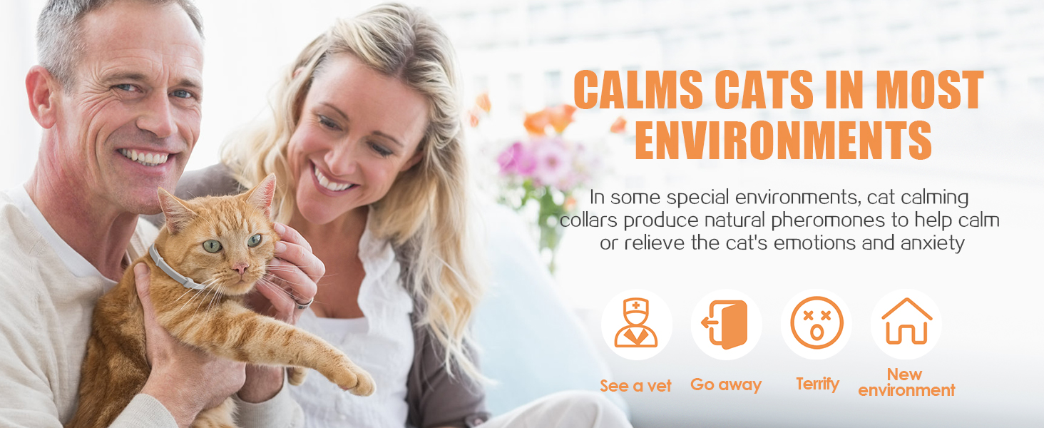 Continuously Calms Cats for up to 60 Days:The cat calming collar continues to produce natural pheromones for up to 60 days and only needs to be replaced every four weeks. It is waterproof, so you don't need to remove it even if your cat needs a bath, and you don't need to wear it until your cat has adapted to the new environment or is no longer anxious.