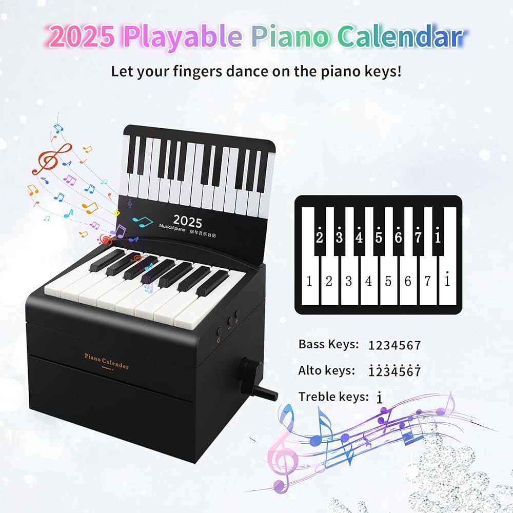 PLAYABLE PIANO CALENDAR: This 2025 piano calendar combines the functions of a calendar with the elegance of a piano, presenting you with a new piece of sheet music every week, and its authentic sound quality allows for a pleasant musical experience, making it the calendar for music lovers!