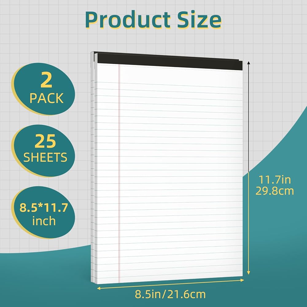 【Note Pads】2 pack of 25-sheet note pads, letter size white paper legal pads, idea for everyday use at office, home and school.