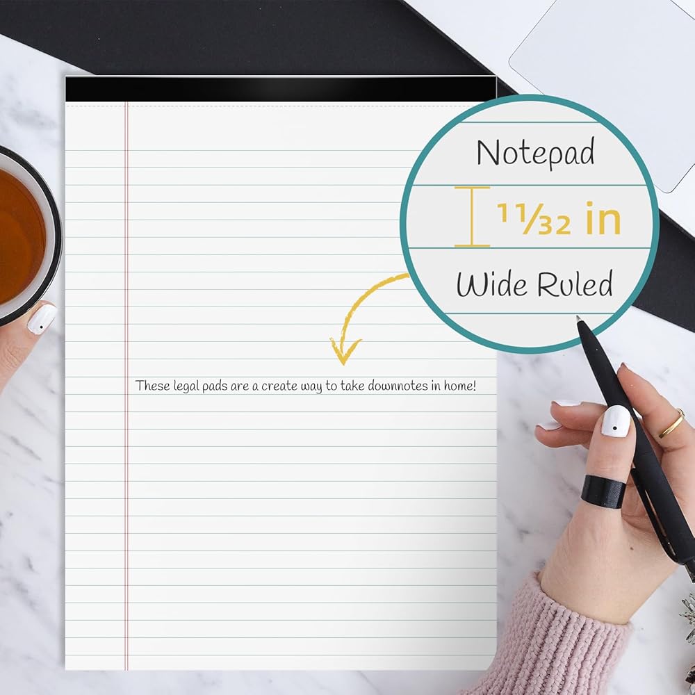 【Legal Pads】Wide ruled line notepad with 11/32 in line is easy to reading and transcribing.
