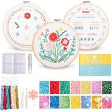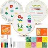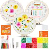 HTVRONT Bead Embroidery Kit for Beginners 3 Sets Bling Bling Bead Embroidery Kit with Step by Step Stitch Video & Instructions, Three-Dimensional Starter Embroidery Set with 19 Stitches for Gift