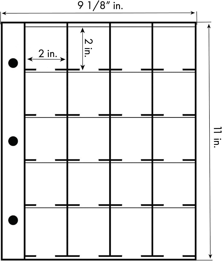 PAGE DIMENSIONS: 9 3/16" x 11" POCKET DIMENSIONS: 2" x 2"