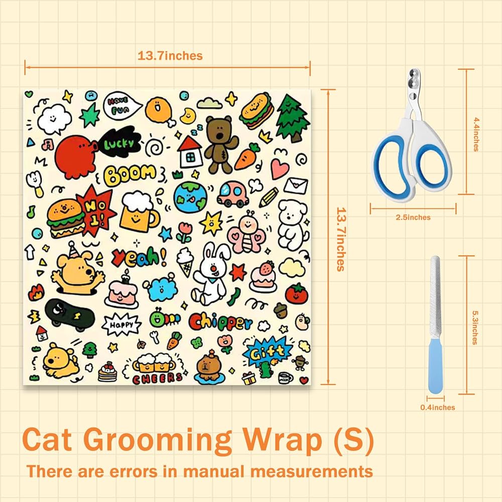 Cat Grooming Wrap, Velcro Fabric for Cat Nail Trimming Restraint, Multi-Purpose Cat Wrap with Cat Nail Clippers and Nail File, Cat Restraint Calming Wrap for Nail Clipping S