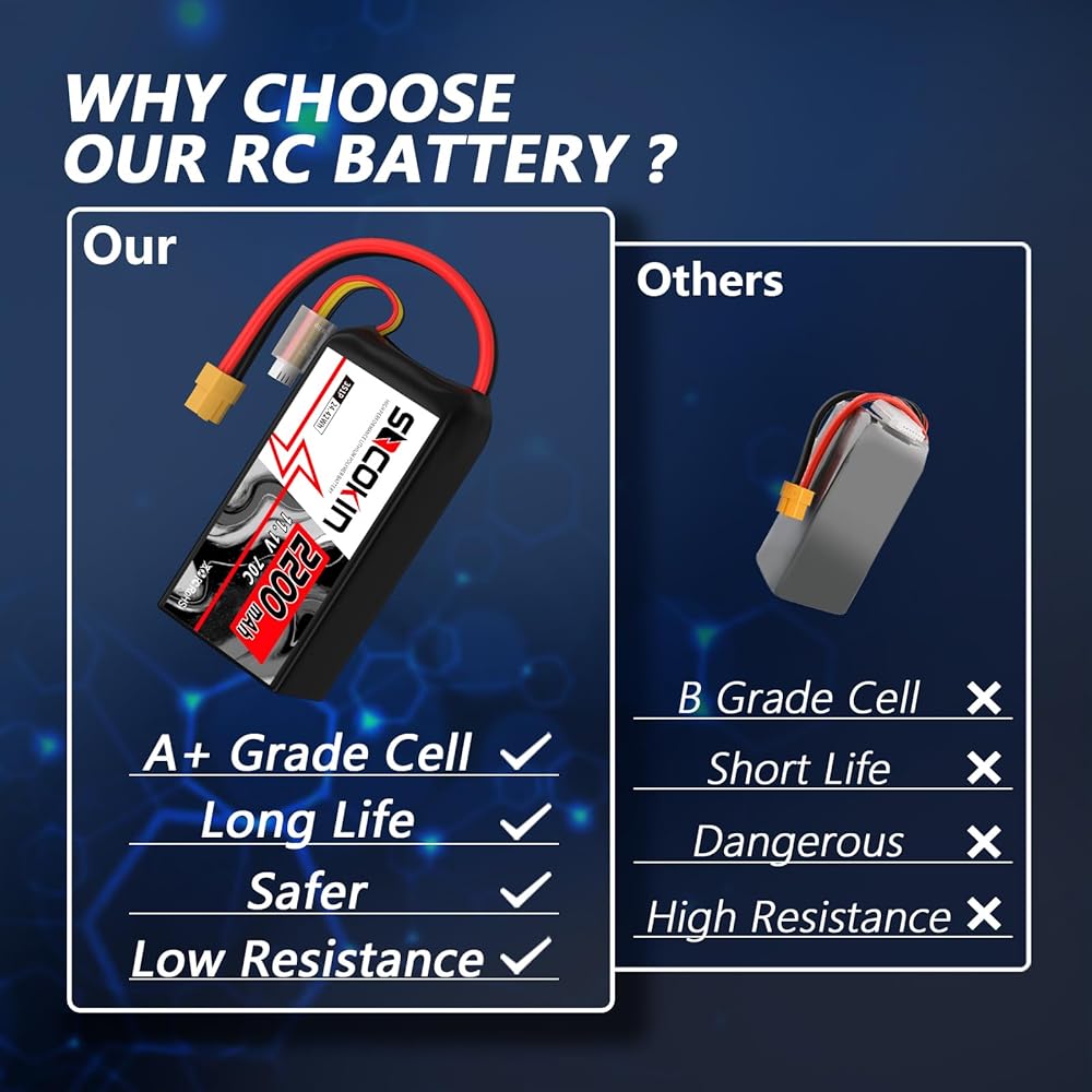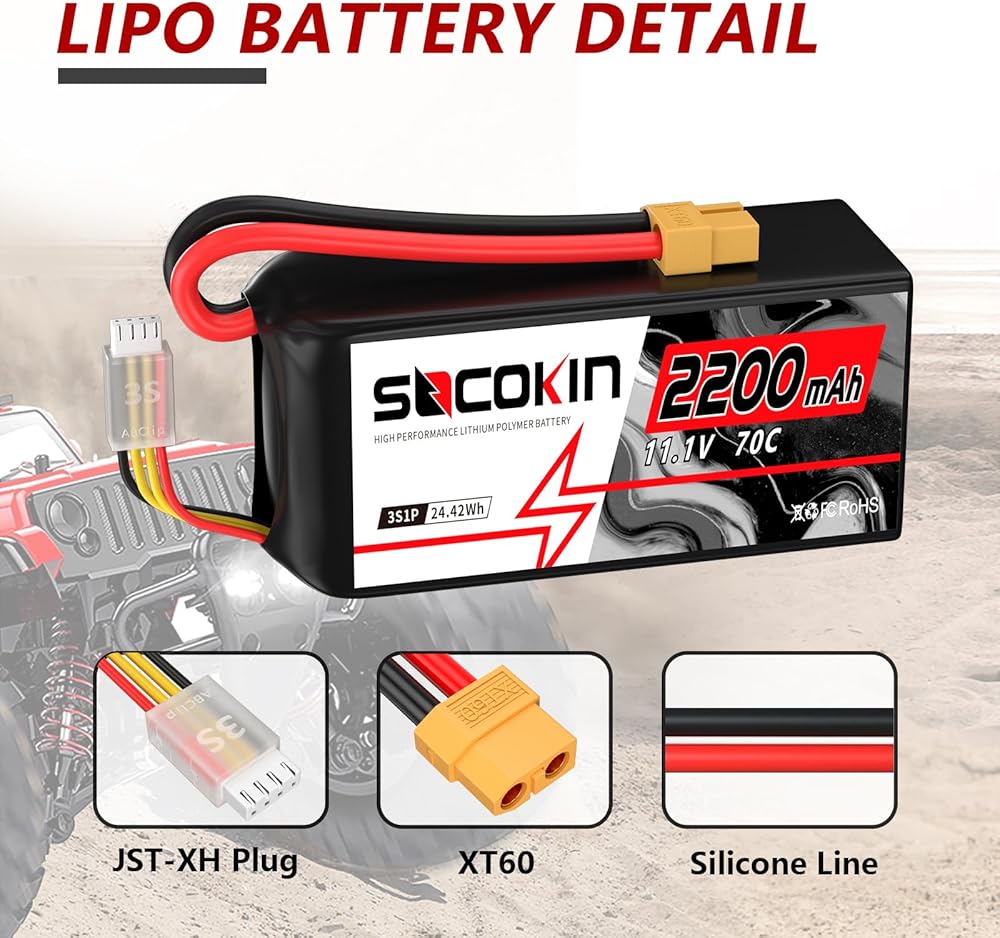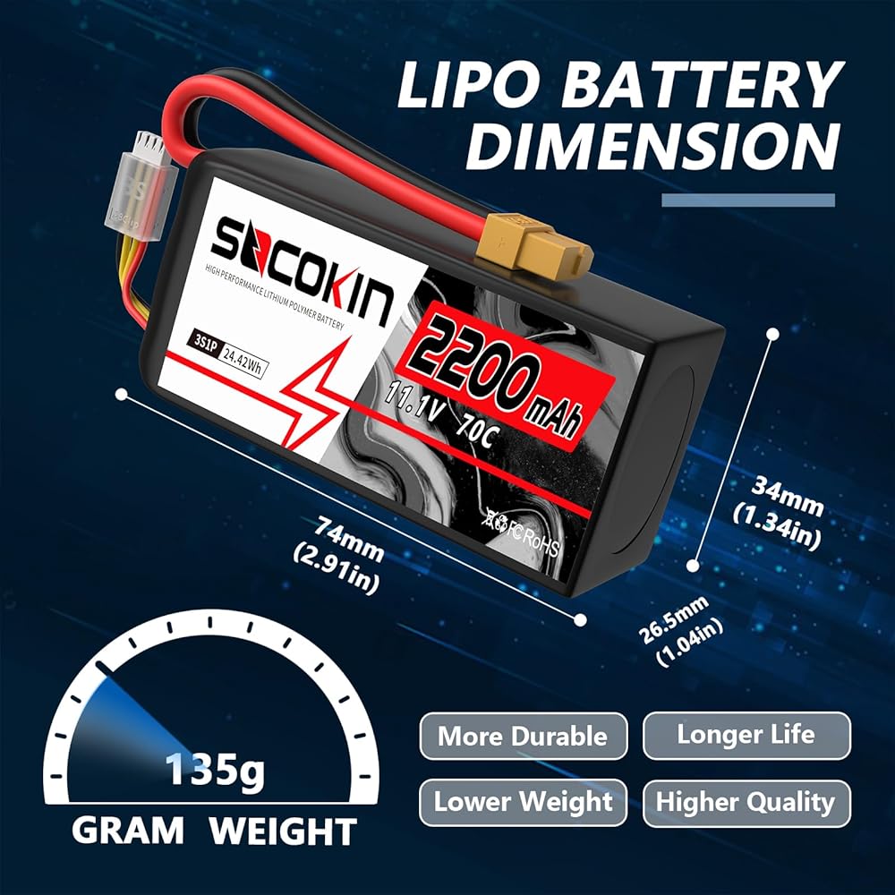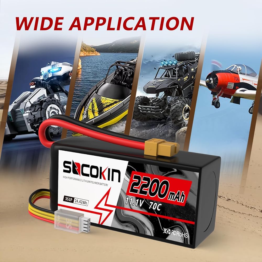 【Function】Socokin 3S 70C discharge rate rc lipo battery 's high speed charging and excellent endurance power provide good Experience for your remote control equipment in activities.
