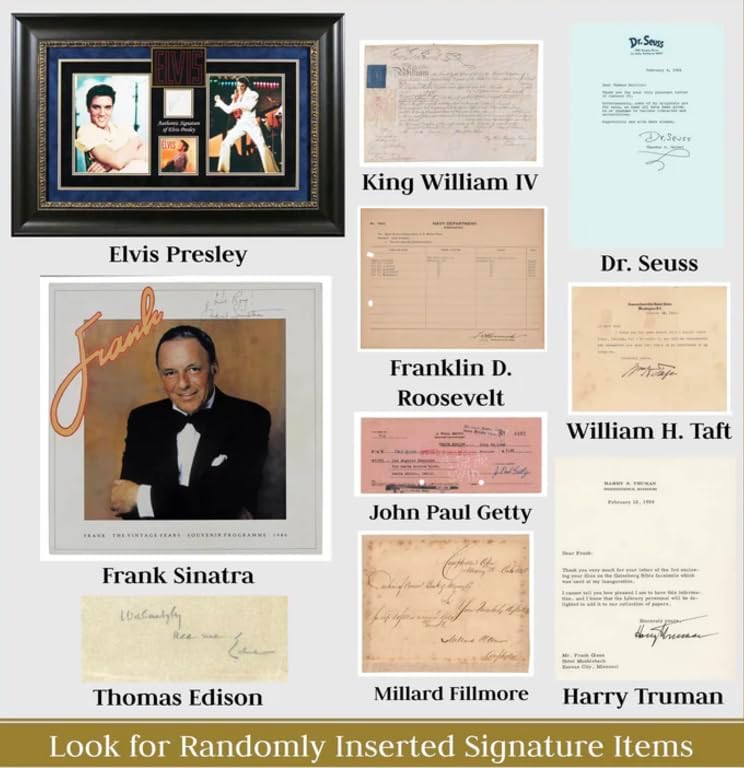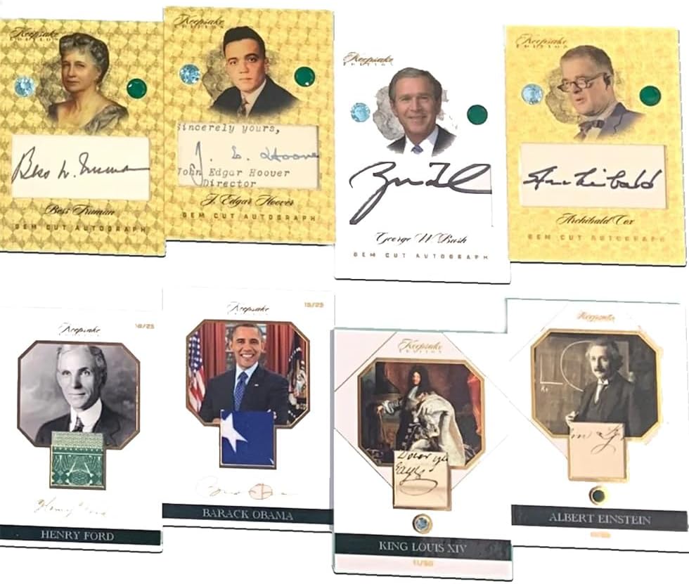 Rare Finds: Discover randomly inserted signatures from Presidents, Kings & Queens, Elvis Presley, and more. Look for cards with unique features like Cut Signatures, Gemstones, Diamonds, Gold, and even Quad Relics!