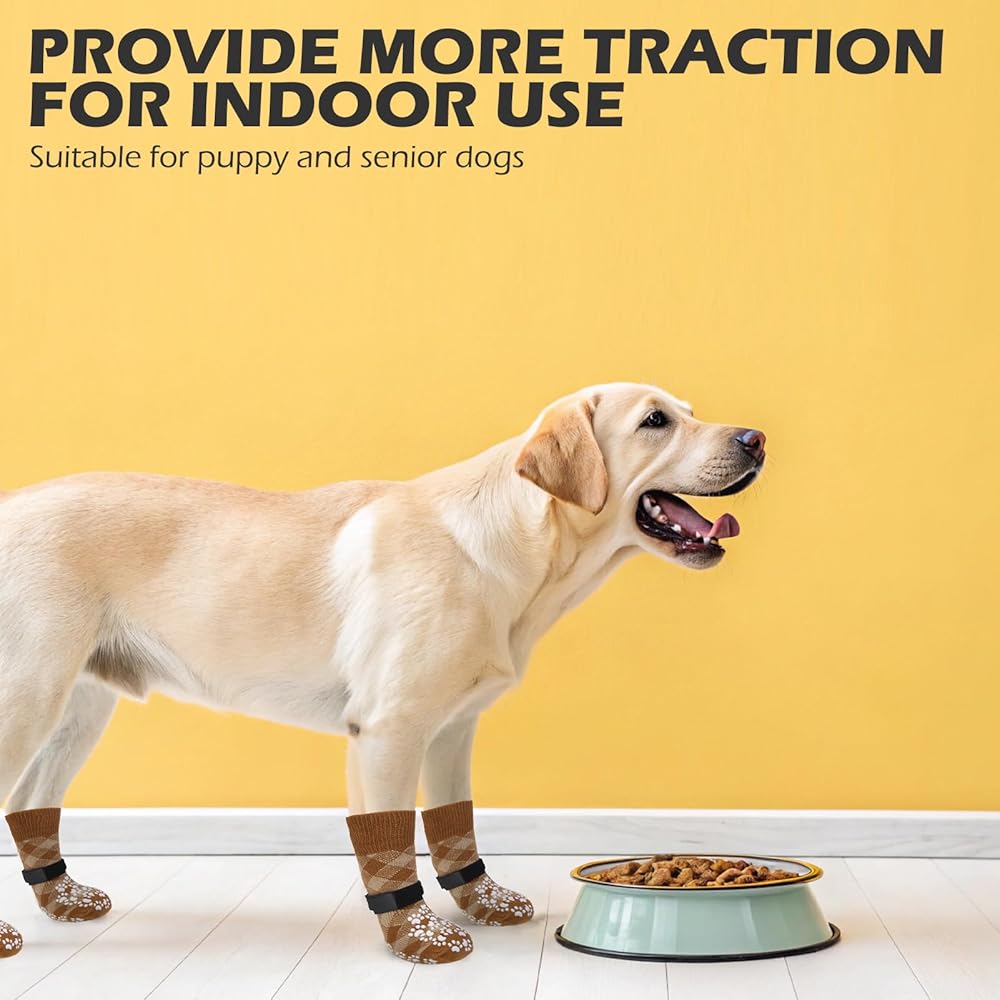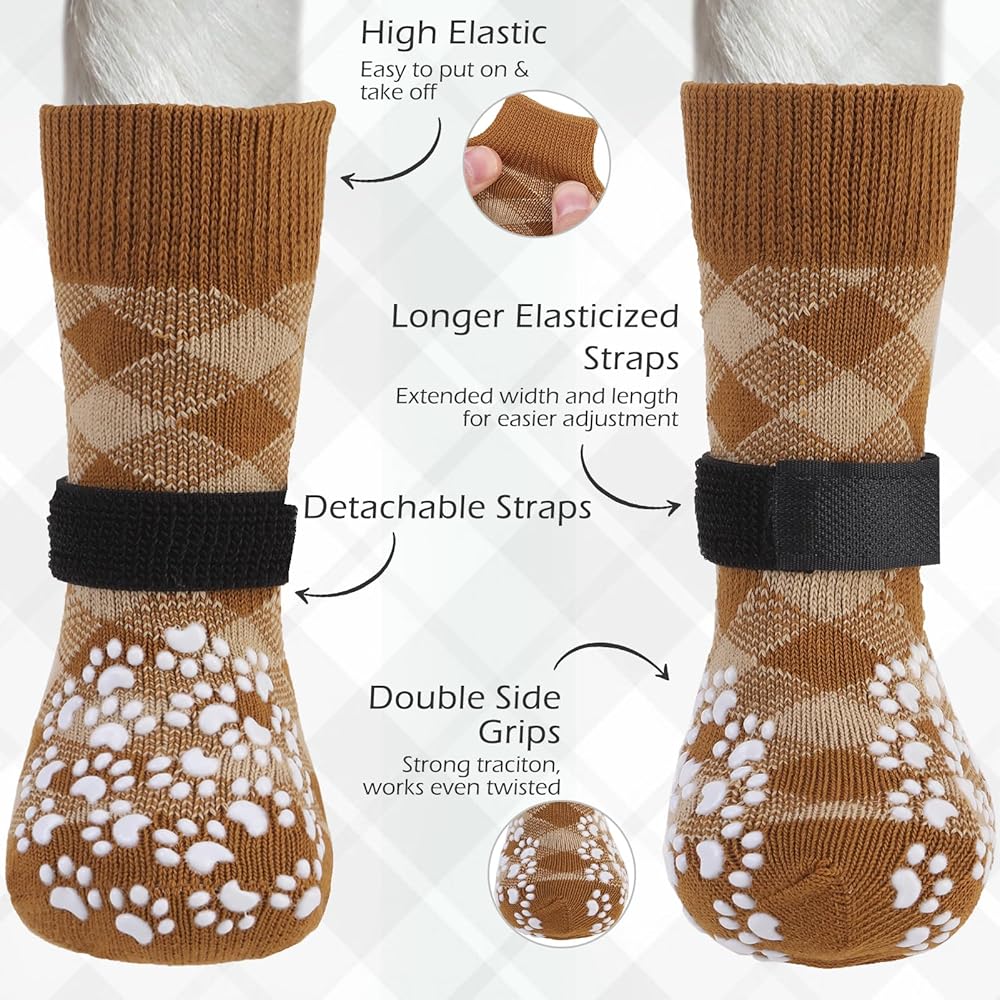 EXPAWLORER Dog Socks to Prevent Licking Paws, Dog Shoes for Hot Pavement, Anti Slip Dog Booties for Hardwood Floors, Dog Boots & Paw Protectors for Small Medium Large Senior Dogs, Khaki XL