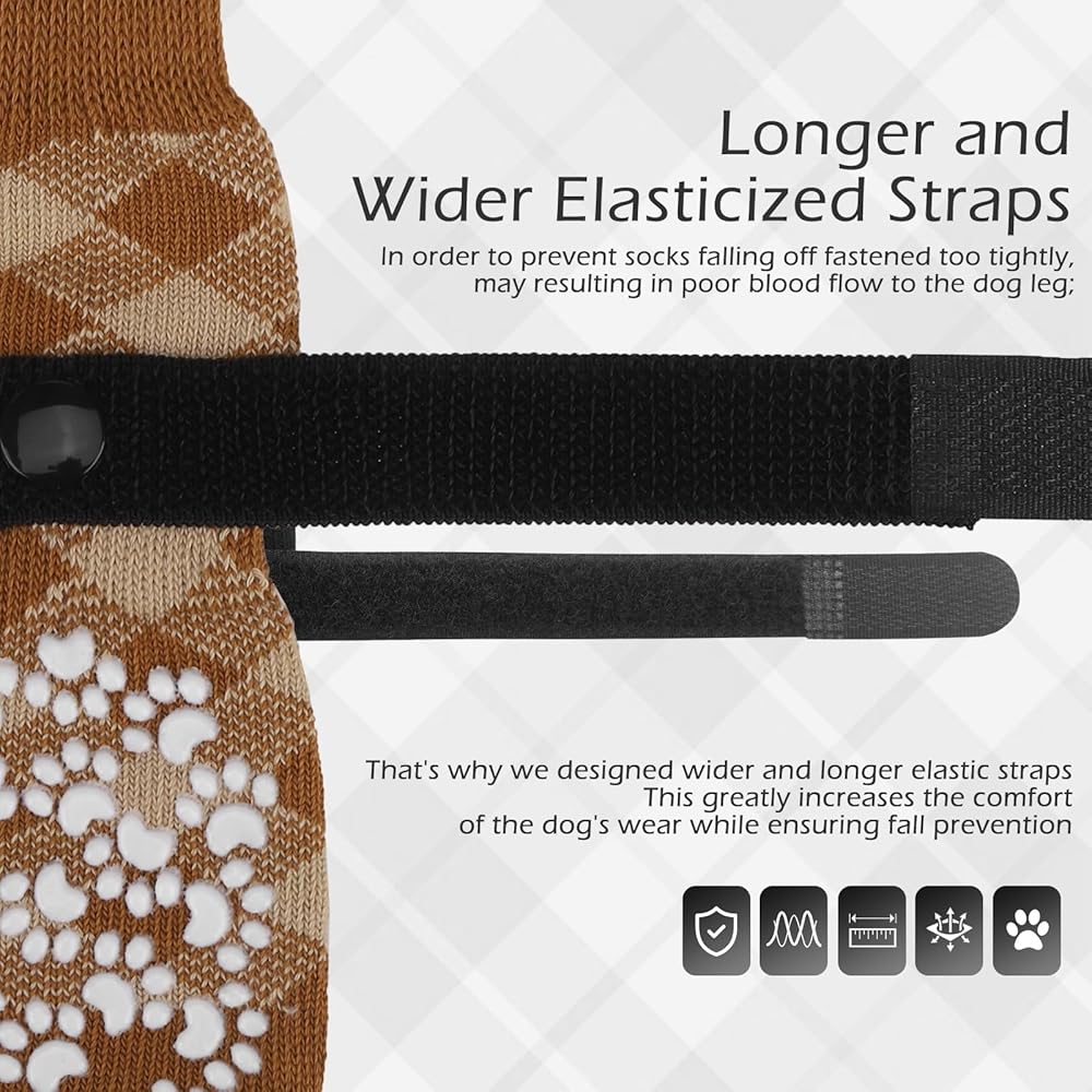 Anti-Fall Off: We've upgraded our design to enable wider and longer elastic sticky straps for comfortable and adjustable fit. Our removable sticky straps ensure that the socks remain secure and avoid any scratches during cleaning. Say goodbye to lost socks and hello to simple and hassle-free maintenance with our paw protector socks.