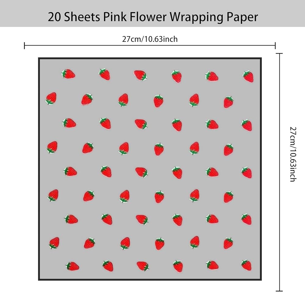 HLTOO 20 Sheets Flower Wrapping Paper, Bouquet Floral Packaging Paper with Strawberry Pattern, for Wedding, Party, Mother's Day, Birthday, and DIY Craft Florist Supplies, Pink, 57CM/22.4Inch