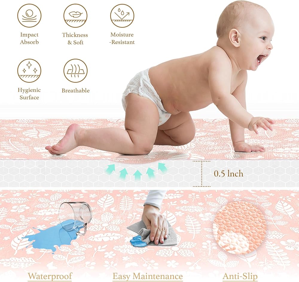 【Extra Thick and Easy to Wipe】Up to 0.5 inches thick! Our mats are 100% waterproof, easy to clean and durable! Just wipe off the mess with a damp cloth and mild detergent, and they will be like new. With no extra trim pieces, our interlocking foam holds together extremely tightly and won't get ripped by those curious little fingers - which means less mess and choking hazards - ever! Our mat assembles easily in minutes and is the perfect play mat for babies.