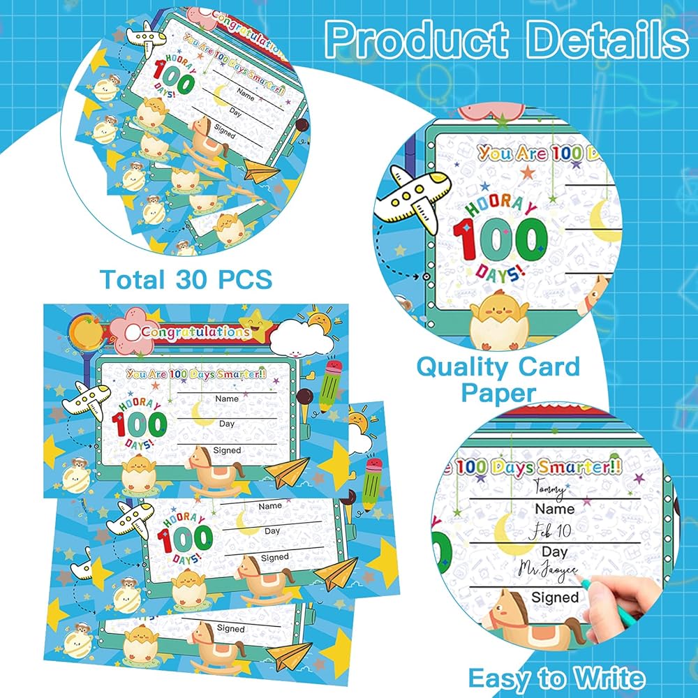 High-quality materials: 100th day of school activities are made from sturdy, high-quality cardstock that's resistant to folding and cracking, and easy to write on. 100 day of school activities perfect for recognizing the achievements and successes of children on their 100-day learning journey, ensuring student satisfaction and marking this important celebratory moment.